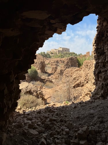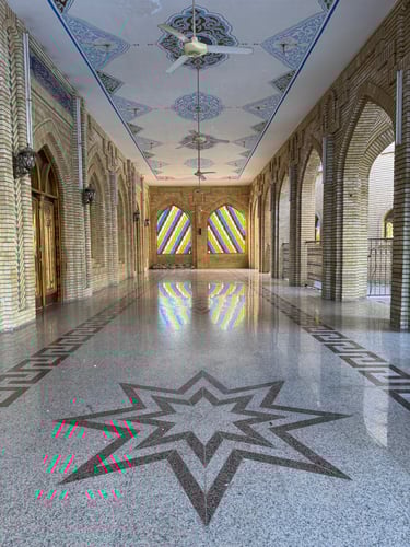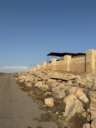 Following the ruins, we walk to Saddam's abandoned palace, exploring its grandeur and encountering the last standing portrait statue of Saddam.