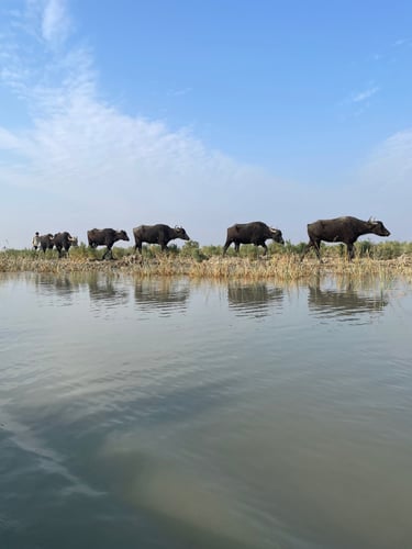 The next morning, we venture to the Chibayish Marshes, home to a community living in reed houses, embracing a way of life dating back to the ancient Sumerians. After interacting with the local Marsh Arabs, we hop on an exhilarating boat tour through the marshes, witnessing tall reeds, swimming buffaloes and various bird species.
